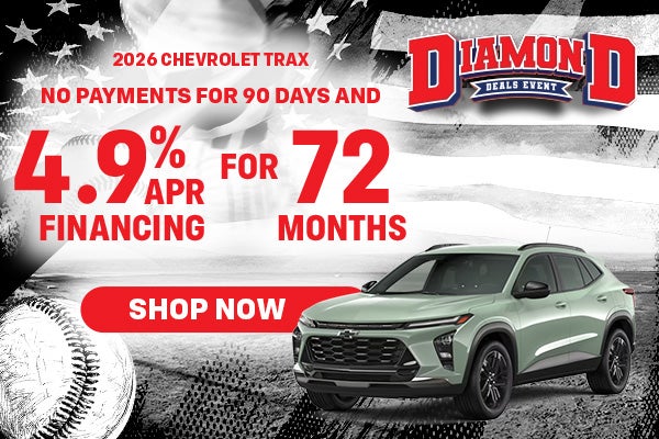 VIN KL77LFEP4TC104215. Stock #104215. MSRP $24,490. Deferred monthly payments for 90 days. Finance charges accrue from date of financing. Must finance with GM Financial. Down payment required at signing, if applicable. Offer not available in PA. Some customers may not qualify. Not available with lease and some other offers. 4.9% APR for 72 months for well-qualified buyers when financed w/GM Financial. Monthly payment is $16.06 for every $1000 you finance. Average example down payment is 10.0%. Not available with leases and some other offers. Tax, tags, title, and dealer/doc fee of $999 not included. Image does not depict the actual vehicle. See dealer for complete details. Must take new retail delivery by 04/30/2026.